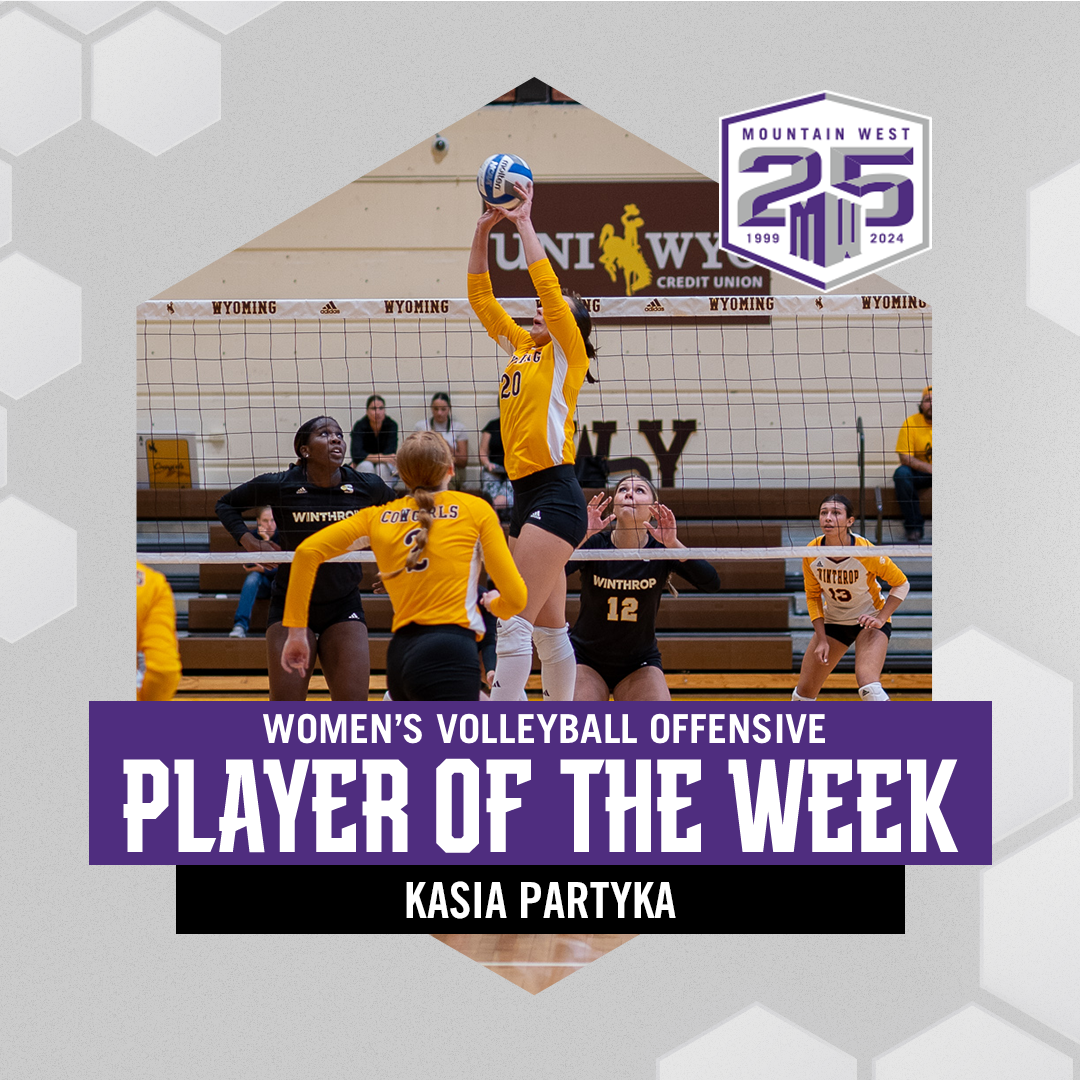 COLORADO SPRINGS, Colo. – Wyoming junior Kasia Partyka has been named the Mountain West Volleyball Offensive Player of the Week while teammate Skylar Erickson secures Defensive Player of the Week honors. San José State’s Teya Nguyen has been tabbed the Mountain West Volleyball Freshman of the Week.