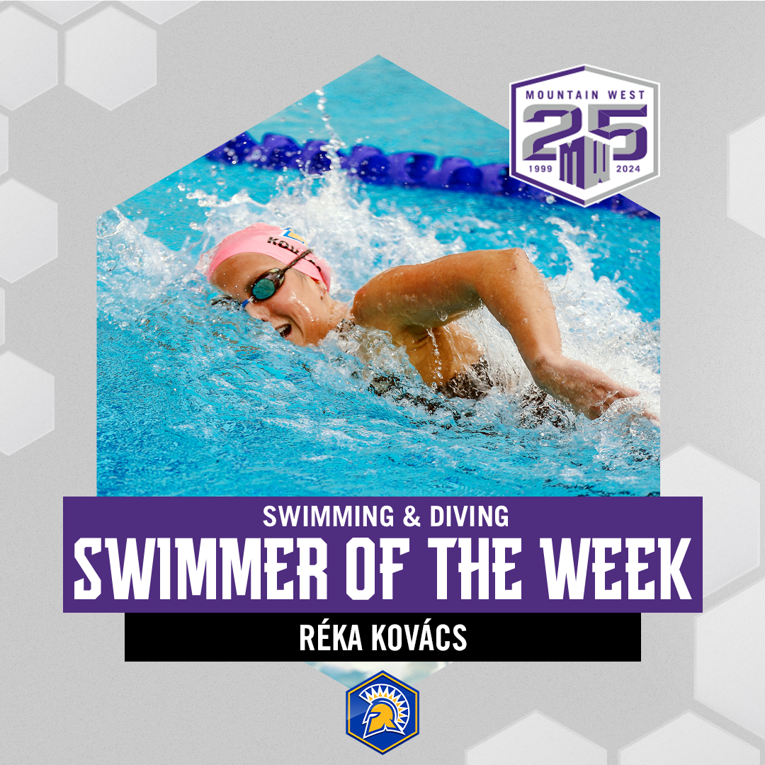 COLORADO SPRINGS, Colo. – San José State swept Mountain West Swimming & Diving Athlete of the Week honors. Senior Réka Kovács was tabbed the MW Swimmer of the Week, sophomore Jenna Jagielski garnered MW Diver of the Week accolades and Spartan rookie Vilma Lindberg earned the MW Swimming & Diving Freshman of the Week nod.
