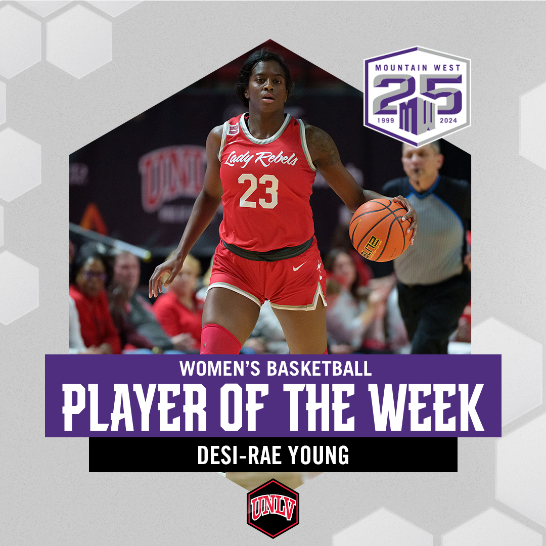 COLORADO SPRINGS, Colo. – The UNLV Lady Rebels swept Mountain West women’s basketball weekly honors after week 16. Center Desi-Rae Young was tabbed the MW Women’s Basketball Player of the Week, while rookie teammate Amarachi Kimpsongarnered the MW Women’s Basketball Freshman of the Week nod.