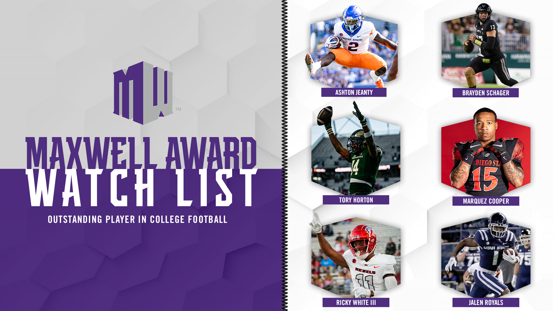 COLORADO SPRINGS, Colo. – Six Mountain West football players are among the 80 student-athletes on the watch list for the 88th Maxwell Award, presented annually to the outstanding player in college football.