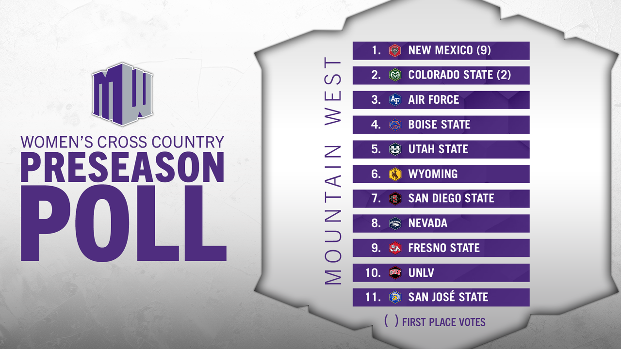 On the men’s side, Air Force finished second with 55 points and two first-place votes, while Wyoming was picked third (44 points). Boise State, Colorado State and Utah State tied for fourth after all receiving 39 points, followed by Nevada in seventh (20), Fresno State in eighth (13) and San José State in ninth (12).