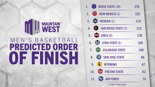New Mexico was picked second in the preseason poll with 233 points and one first-place vote, while Nevada was selected third with 219 points and a first-place vote. San Diego State was picked fourth with 213 points and two first-place votes. UNLV was chosen to finish fifth with 178 points and two first-place votes, while Utah State was selected sixth with 169 points and the final first-place vote.