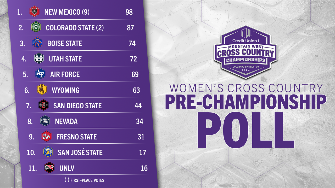 Rounding out the MW women’s pre-championship poll is Wyoming in sixth (63 points), San Diego State in seventh (44) points), Nevada in eighth (34 points), Fresno State in ninth (31 points), San José State in 10th (17 points), and UNLV in 11th (16 points).