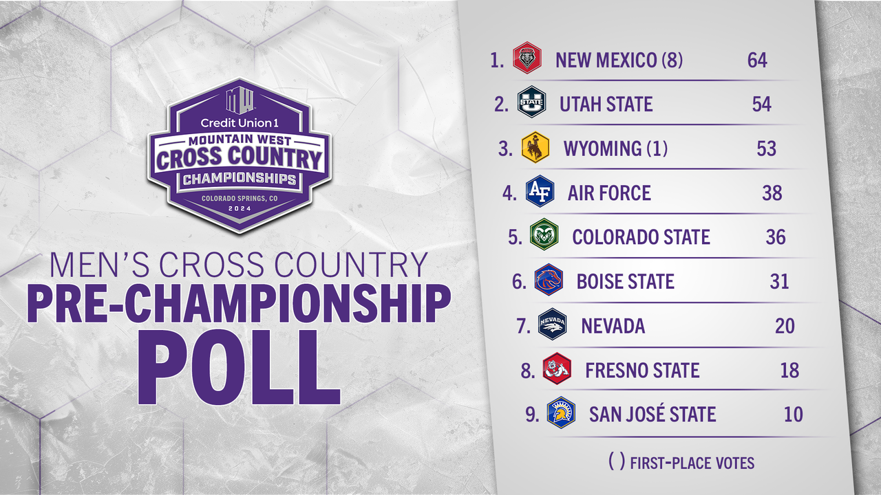 Following the Cowboys in the men’s poll are Air Force in fourth (38 points), Colorado State in fifth (36 points), Boise State in sixth (31 points), Nevada in seventh (20 points), Fresno State in eighth (18 points) and San José State in ninth (10 points).