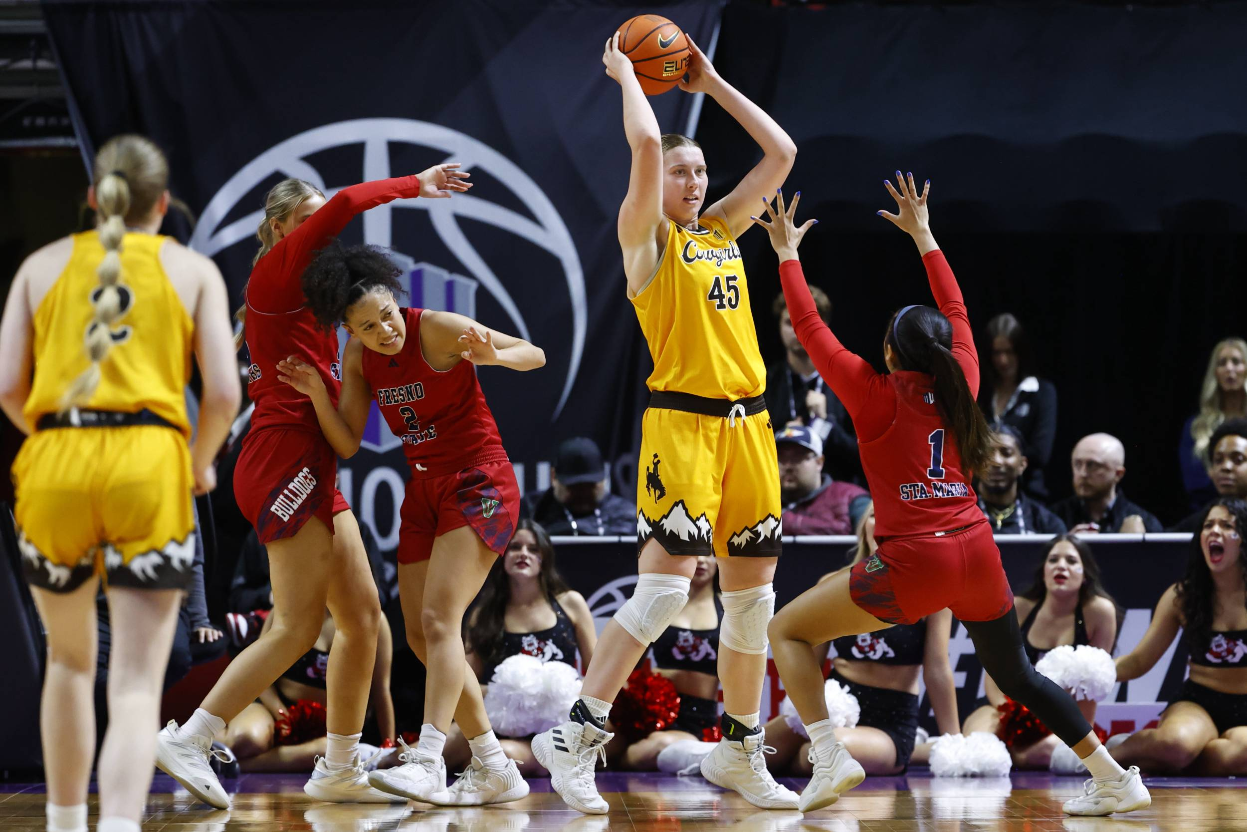 Against a small but physical Fresno State team, Wyoming found early success through wing entry passes to Fertig in the post. And she made it look way too easy to get around and put up a high-percentage layup.