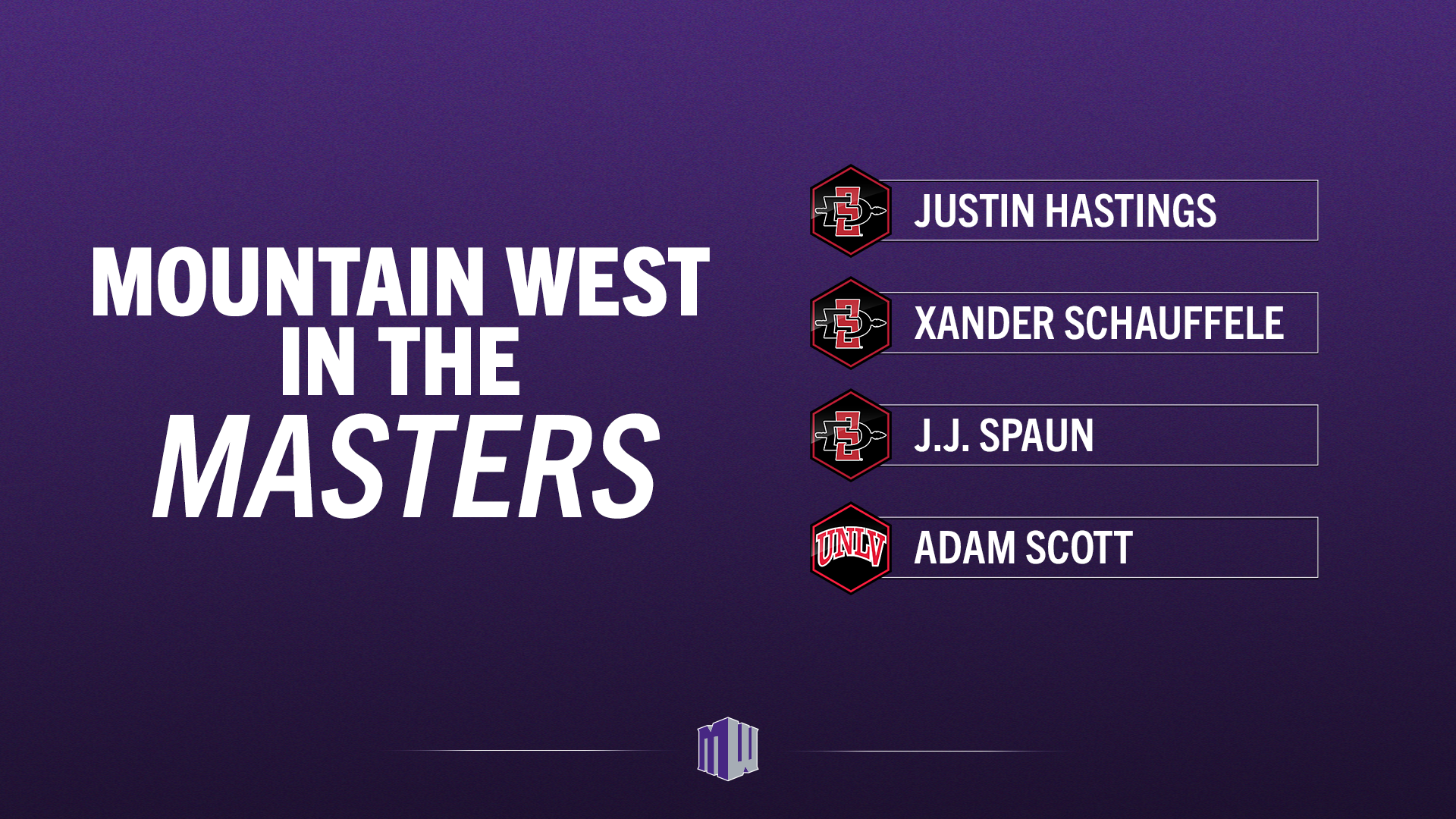 COLORADO SPRINGS, Colo. – Four players from current Mountain West men’s golf programs will participate in the 89th Masters Tournament at Augusta National Golf Club, including current San Diego State student-athlete Justin Hastings, one of just five amateurs in the field.