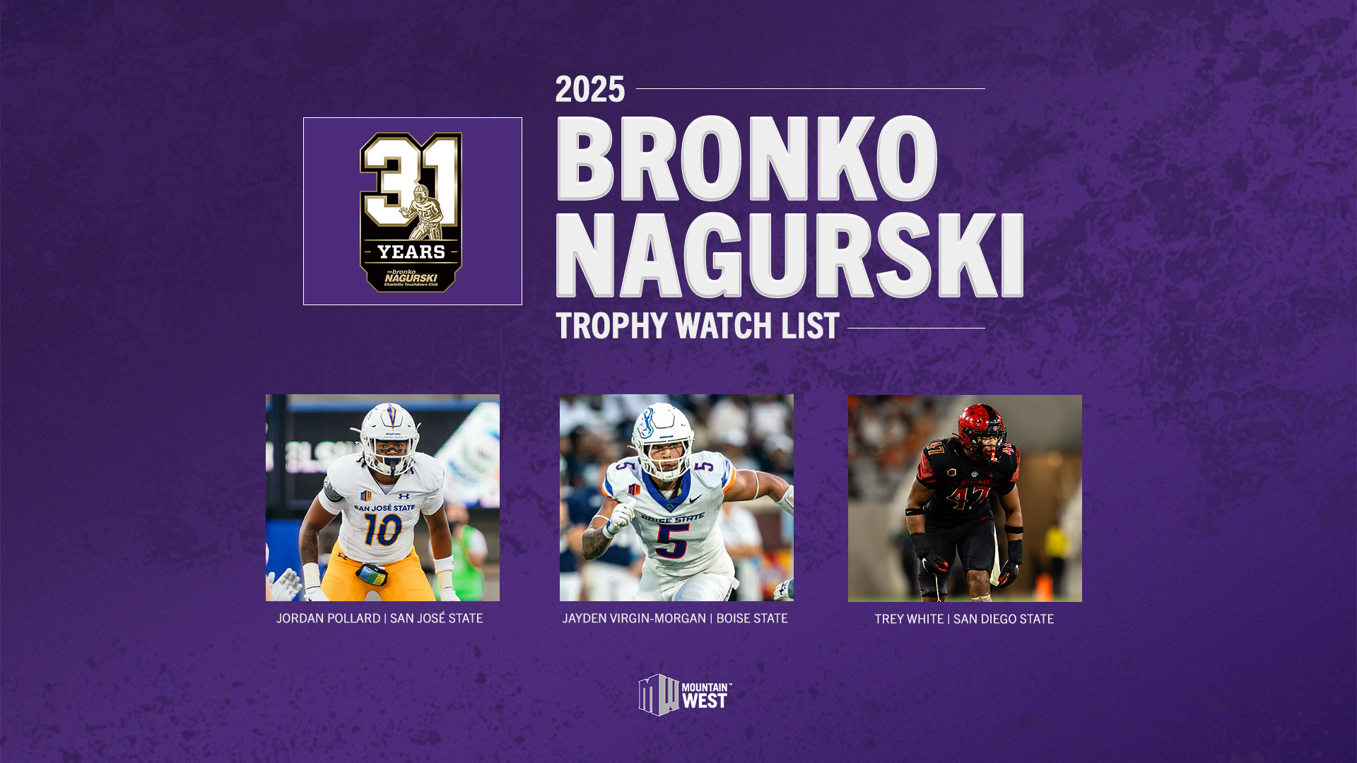 DALLAS – Three Mountain West players earned spots on the 2025 Bronko Nagurski Trophy Watch List, as announced by the Football Writers Association of America on Tuesday.