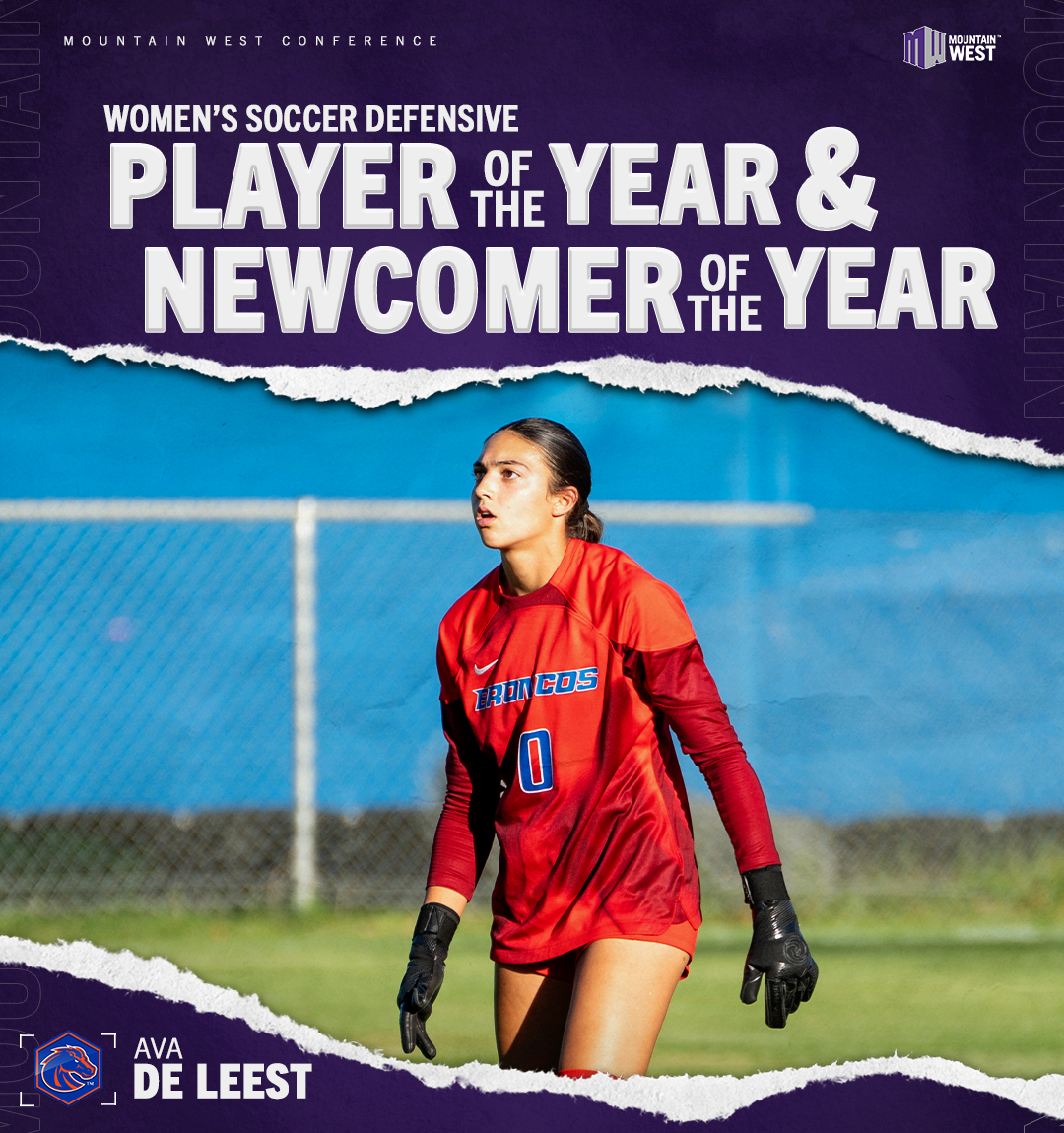 A native of Fullerton, California, de Leest becomes the second Bronco in program history to earn the defensive honor and first since Macie Nelson earned the honor in 2020. The freshman is also the second Bronco to be named the MW Newcomer of the Year (Raimee Sherle, 2016). The goalkeeper posted a Conference-best five shutouts in MW action and limited opponents to just six goals, posting a goals against average of .600. Additionally, de Leest recorded 35 saves.