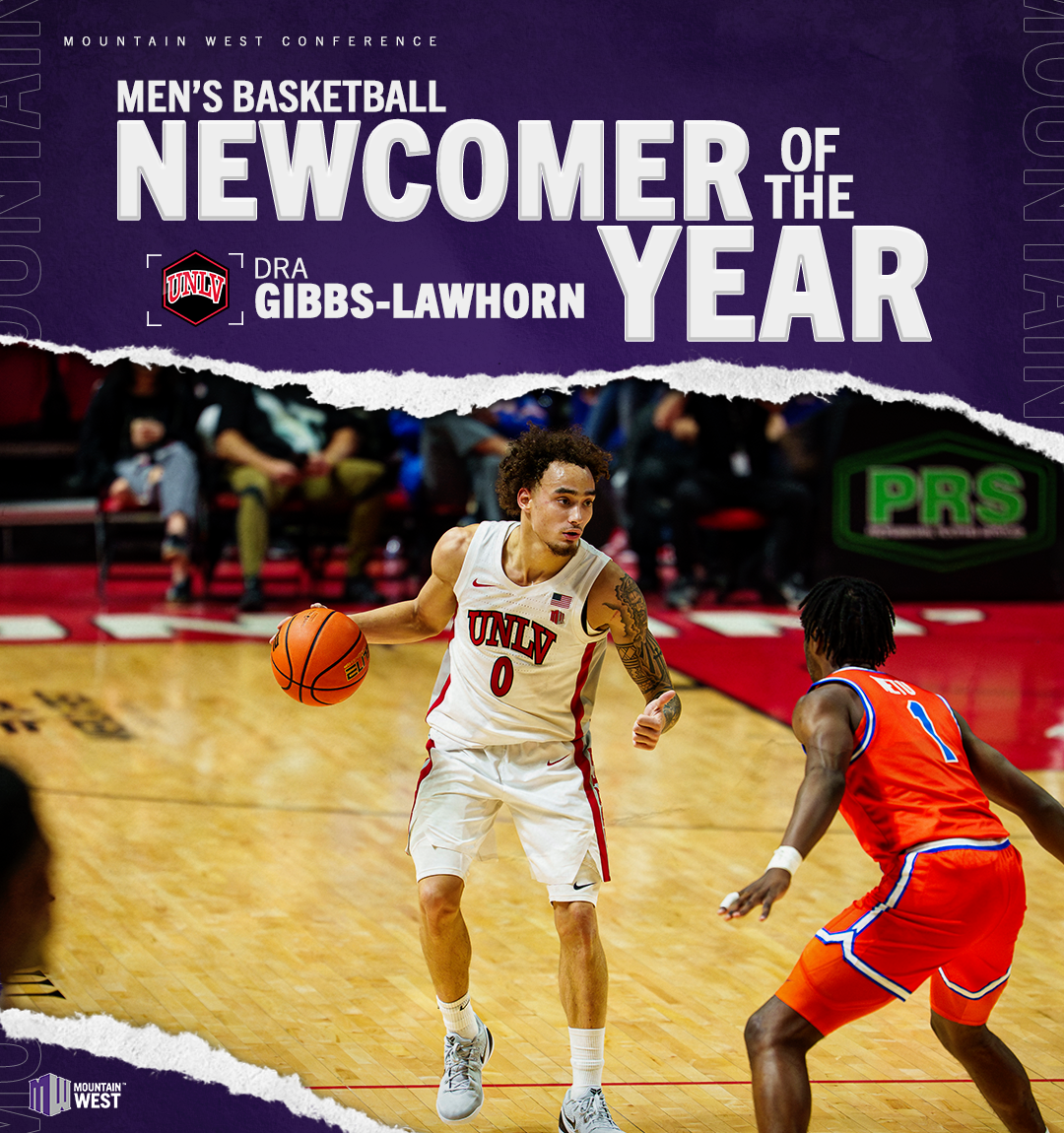 Gibbs-Lawhorn is the second player from UNLV to earn MW Newcomer of the Year honors, joining Mike Moser in 2012. He finished the Conference season with an MW-leading 23.6 points per game, scoring 30 or more in six MW outings. Gibbs-Lawhorn also averaged 3.1 rebounds and 2.5 assists per game, while shooting 53.5 percent from the floor.
