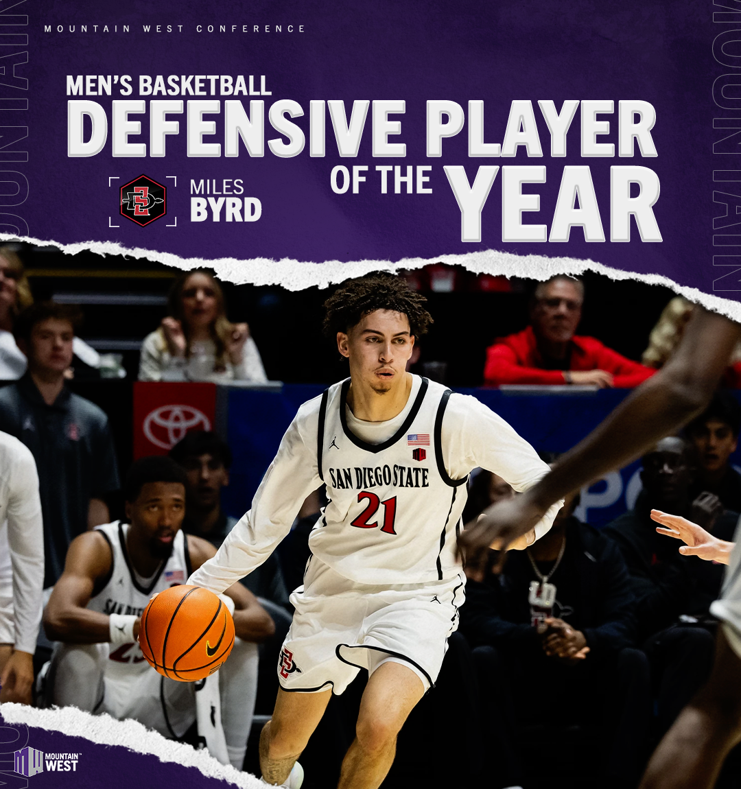 Byrd is the fifth straight Aztec to be voted MW Defensive Player of the Year and ninth in school history. Byrd recorded 11 points and five boards per game in MW action. He also led the league in steals, averaging 2.2, and finished Conference action with 1.5 blocks per game, ranking third in the MW.